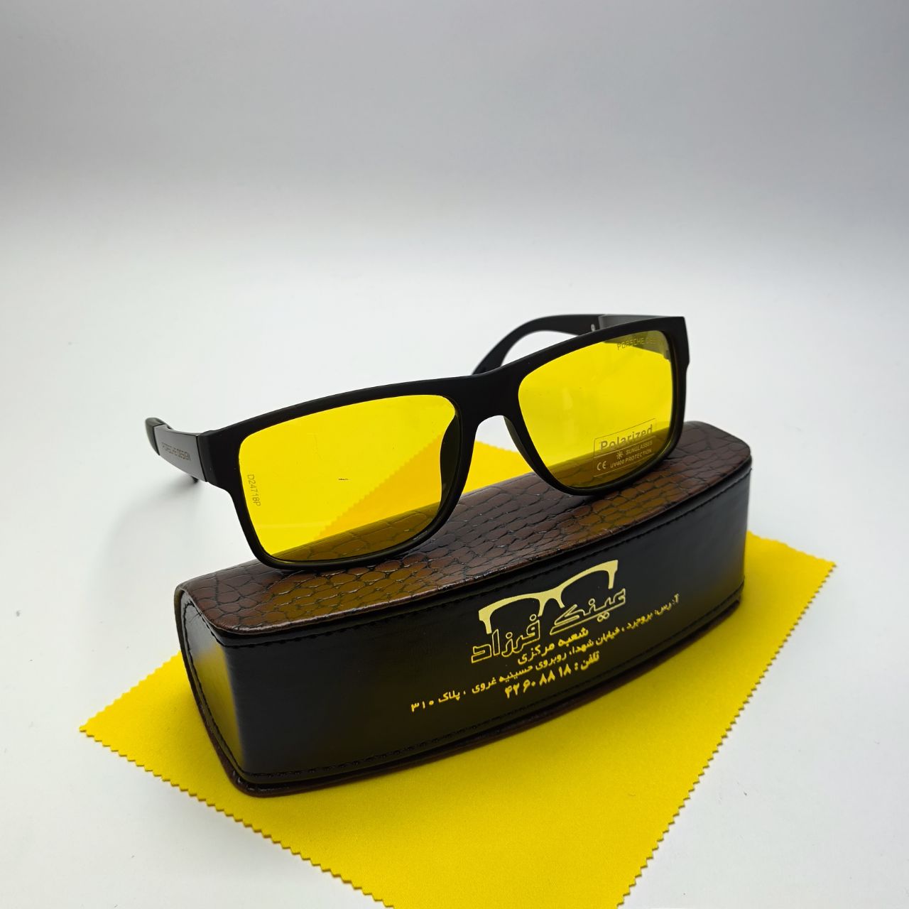 عینک آفتابی مردانه پلاریزه کائوچو بیس دار پورش Porsche مدل 24718 + پک هدیه لوازم جانبی