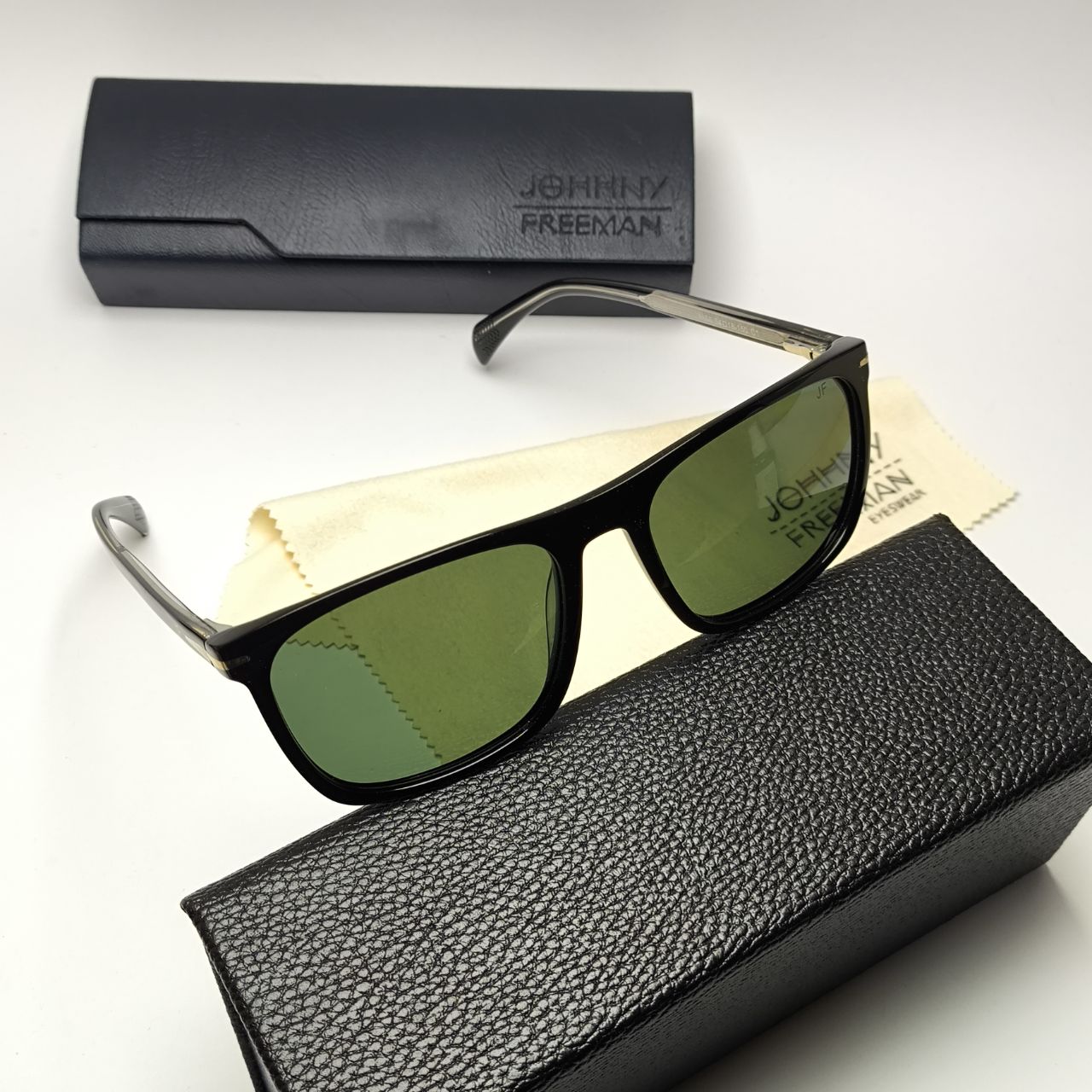 عینک آفتابی جانی فریمن Johhny freeman مدل 8850 مستر دسته سیم کائوچو اسیتیت پلاریزه به همراه پک کامل اورجینال