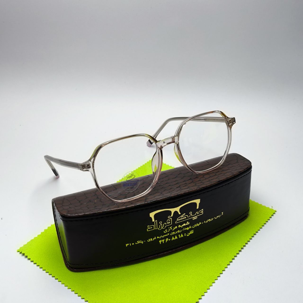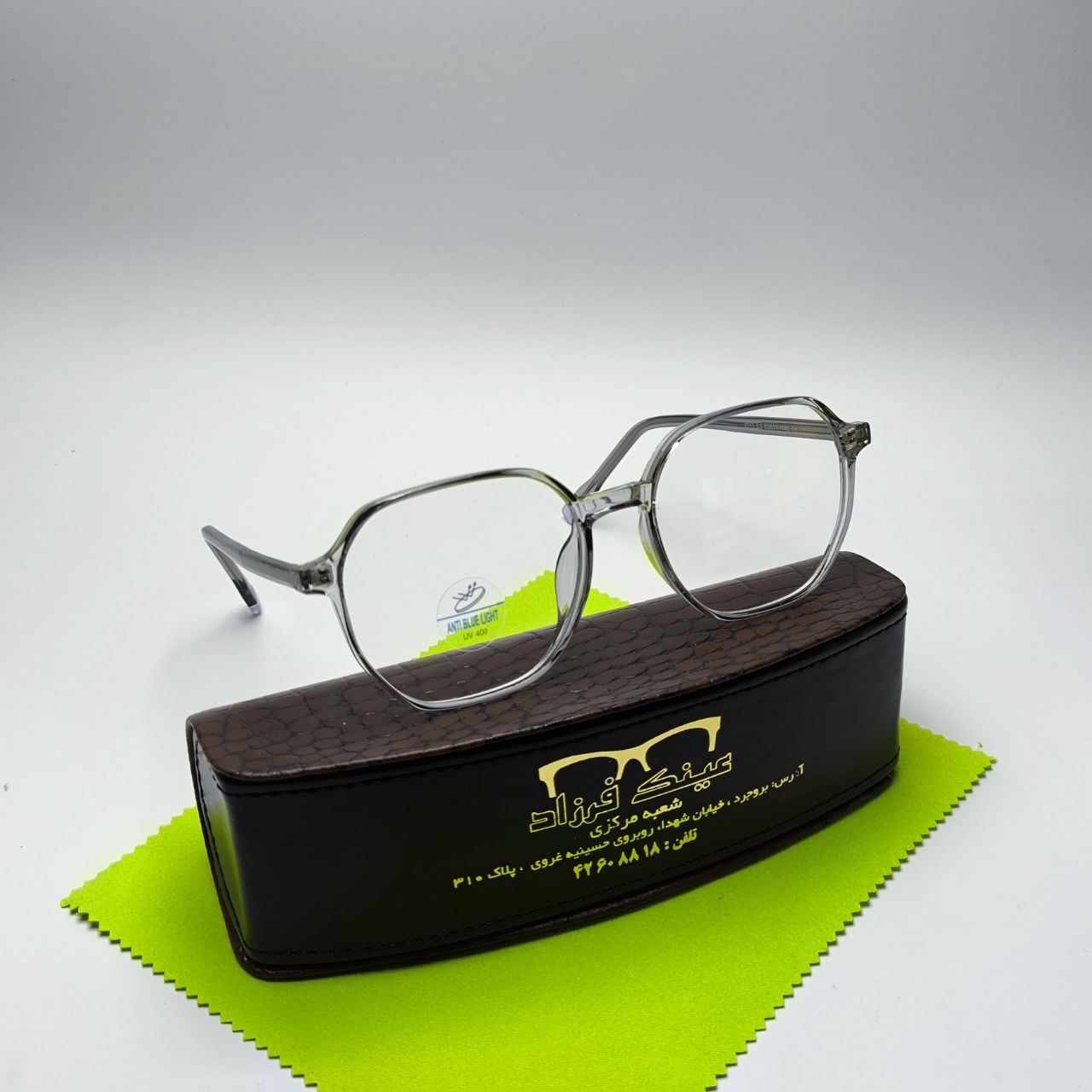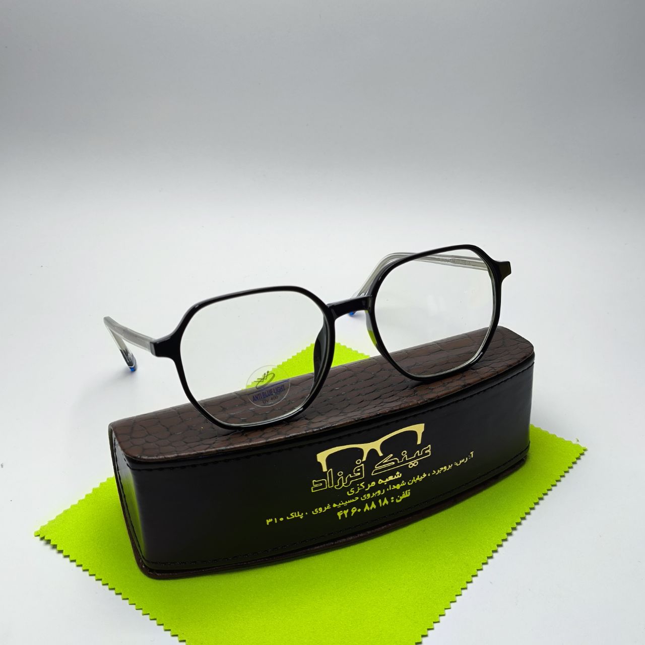 (شما میتوانید دستمال و جلد عینک در تصویر رو به صورت جدا در سایت ما خریداری کنید)