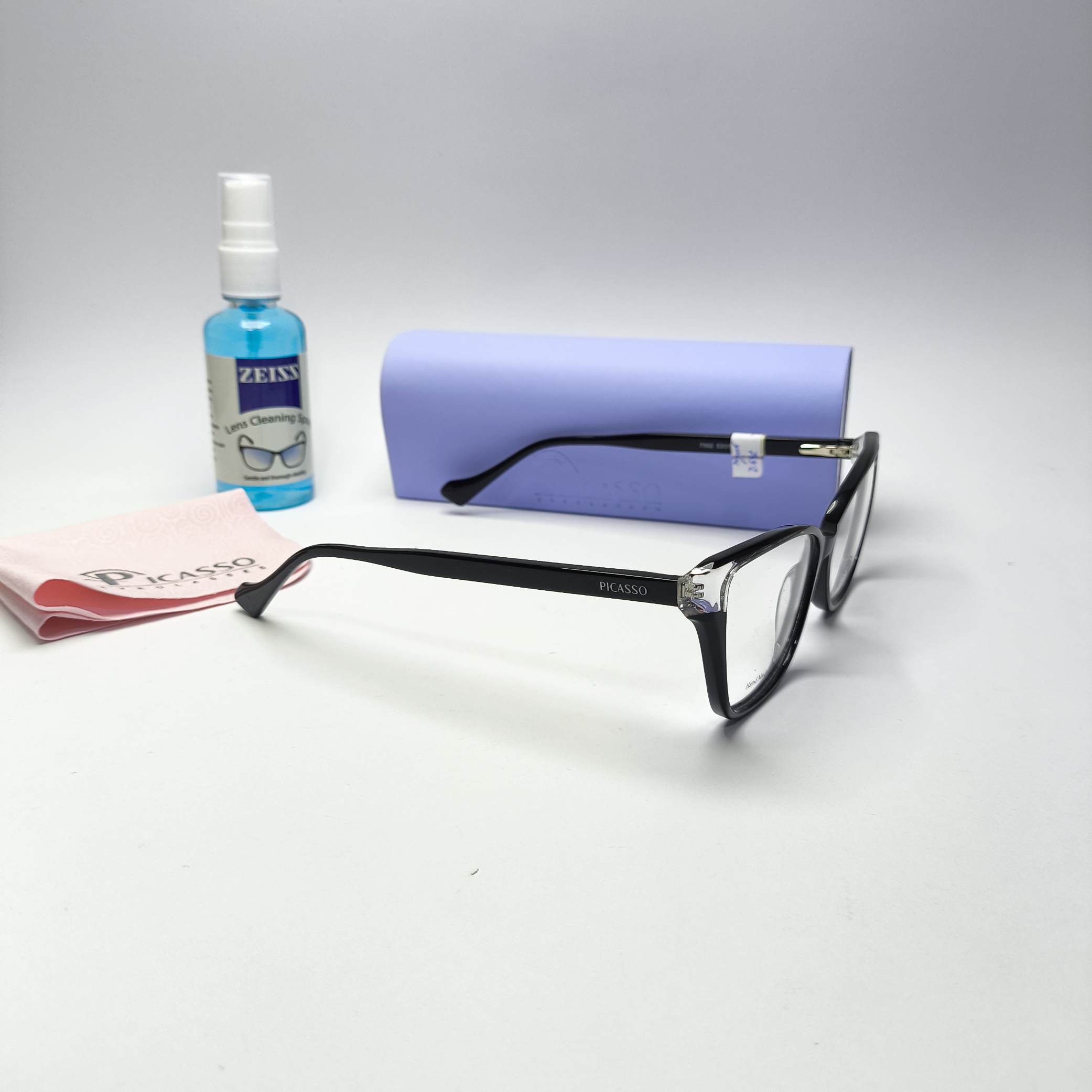 عینک طبی زنانه پیکاسو Picasso مدل 23016 ترکیبی از ظرافت، استایل و کیفیت است. فریم این مدل از جنس استات باکیفیت بالا ساخته شده که علاوه بر مقاومت عالی در برابر فشار و تغییر رنگ، وزن بسیار سبکی دارد و استفاده طولانیمدت از آن بدون خستگی خواهد بود.